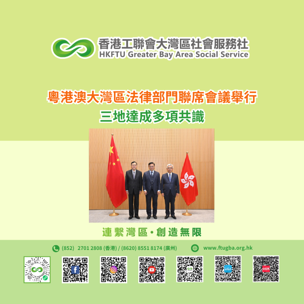 此外,會議首次就三地推動大灣區高質量發展的相關政策措施進行討論,加強相互理解和協作。三地介紹各自相關政策措施的最新發展,包括律政司在副司長領導下會加大力度,推廣香港法律服務,協同其他專業服務支援內企出海。