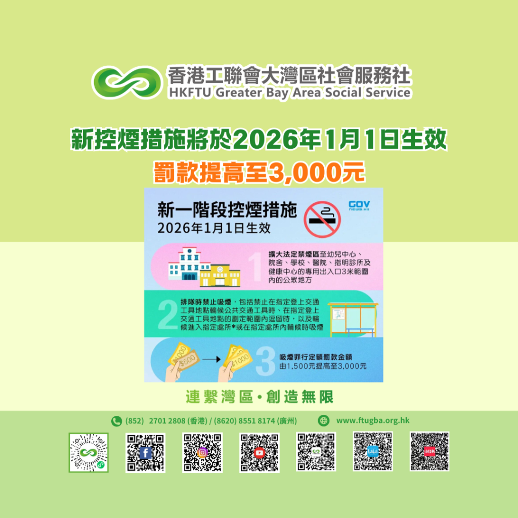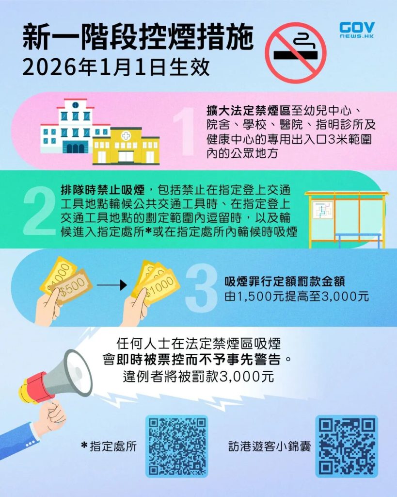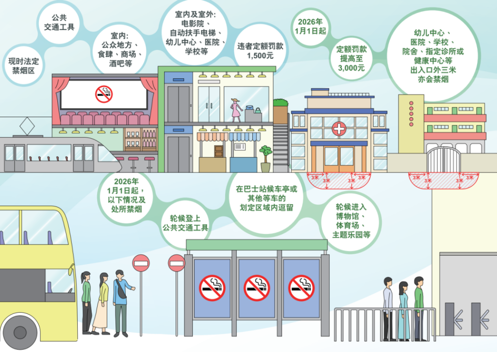 新控煙措施將於2026年1月1日生效 罰款提高至3,000元