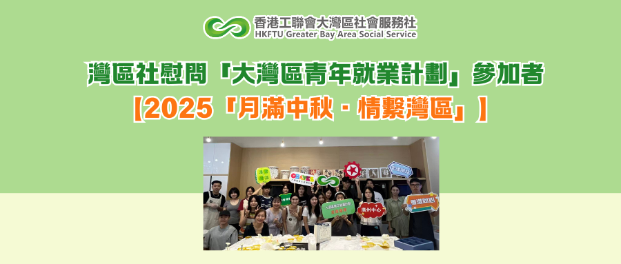 中秋佳節將至,為向在大灣區內地城市就業的香港青年傳遞關懷與溫暖,香港工聯會大灣區社會服務社(下稱灣區社)於9月開展了兩場「大灣區青年就業計劃」(下稱「計劃」)參加者慰問活動。