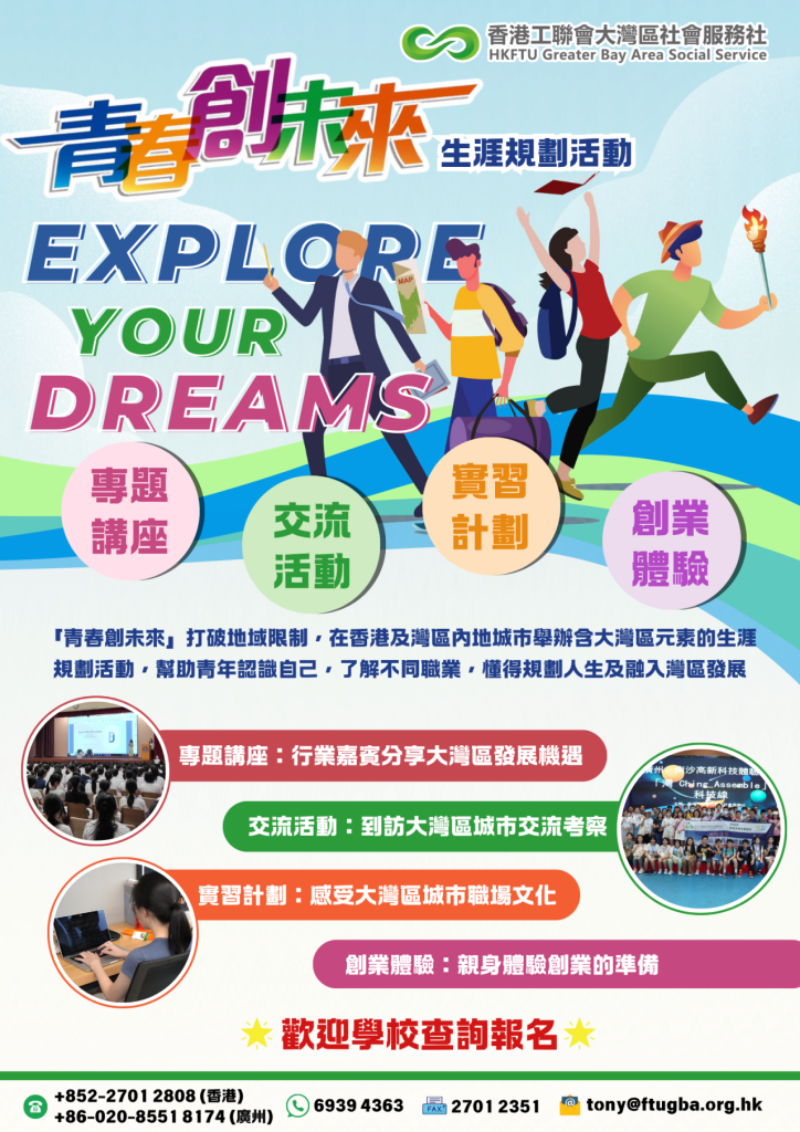 「青春創未來」是一系列充滿大灣區元素的生涯規劃活動,讓中學生及大學生更認識自己、了解不同職業,從而懂得規劃人生及融入灣區發展。