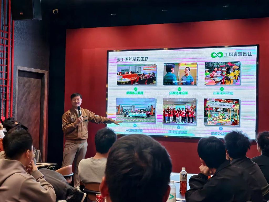 灣區社項目幹事黃潤豆進一步分享了本年度義工工作的兩大突破。首先,團隊積極聯動廣州社區街道開展深度合作,讓義工服務更貼近民生、擴大義工服務的範圍;另一方面,青年義工的角色實現了從「被動參與」到「主動主導」的重要轉變——以往義工多為跟隨團隊執行活動,如今已有 13 名香港青年義工組成核心團隊,從活動方案設計、宣傳、現場執行都主動參與,充分展現了香港青年的創意活力與責任擔當。