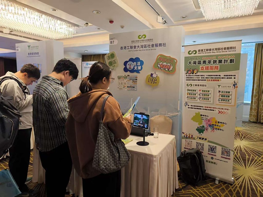 2026年3月13日,大灣區青年就業計劃在香港康得思酒店宴會廳舉行。香港工聯會大灣區社會服務社(下稱灣區社)獲特區政府勞工處委聘,為大灣區青年就業計劃(下稱「計劃」)參加者提供支援服務,在是次招聘會亦獲邀請作為支持機構參與,為香港青年介紹「計劃」安排及「計劃」支援服務。
