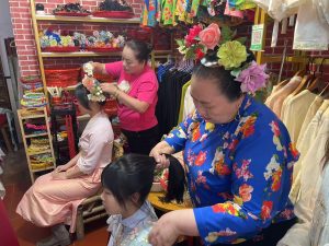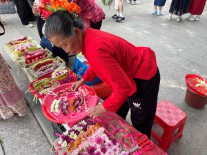 幫香港青年簪花的阿嬤手腳利落的把一朵朵鮮花用髮簪固定在腦後,一邊簪花一邊說:「我們每天早上起來就會簪花,這已經是一輩子的習慣了。」戴上的不只是花,更是一個族群幾百年來的堅持。有香港青年分享:「今次簪花圍體驗真係好有趣,感受到閩南文化嘅魅力。雖然簪花時個頭有少少痛,但完成之後覺得好靚,好似走入咗另一種生活咁。」