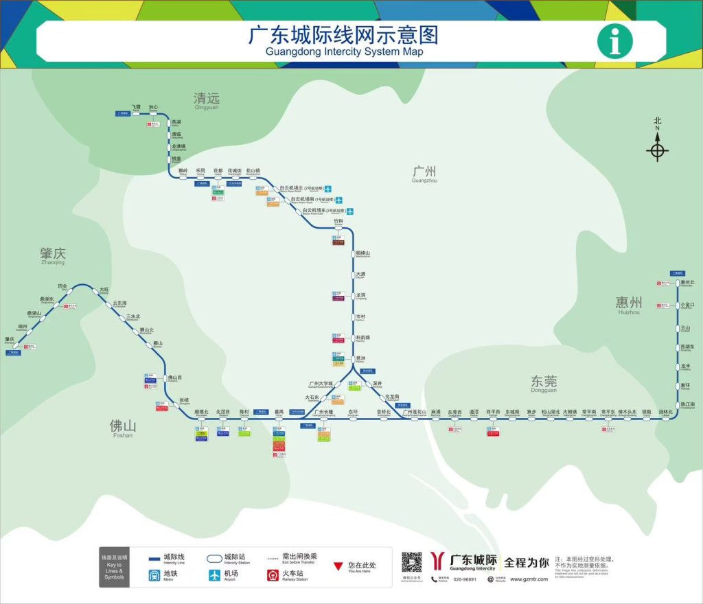 廣州東環城際鐵路(番禺-白雲機場北)、琶蓮城際鐵路開通運營後,將與廣惠、廣肇、廣清、廣州東環城際鐵路(白雲機場北-花都)貫通運營,實現大灣區城際鐵路從「線」到「網」的飛躍。