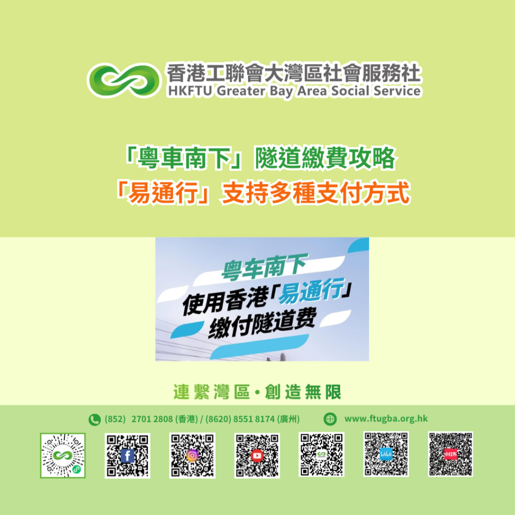 「粵車南下」隧道繳費攻略 「易通行」支持多種支付方式