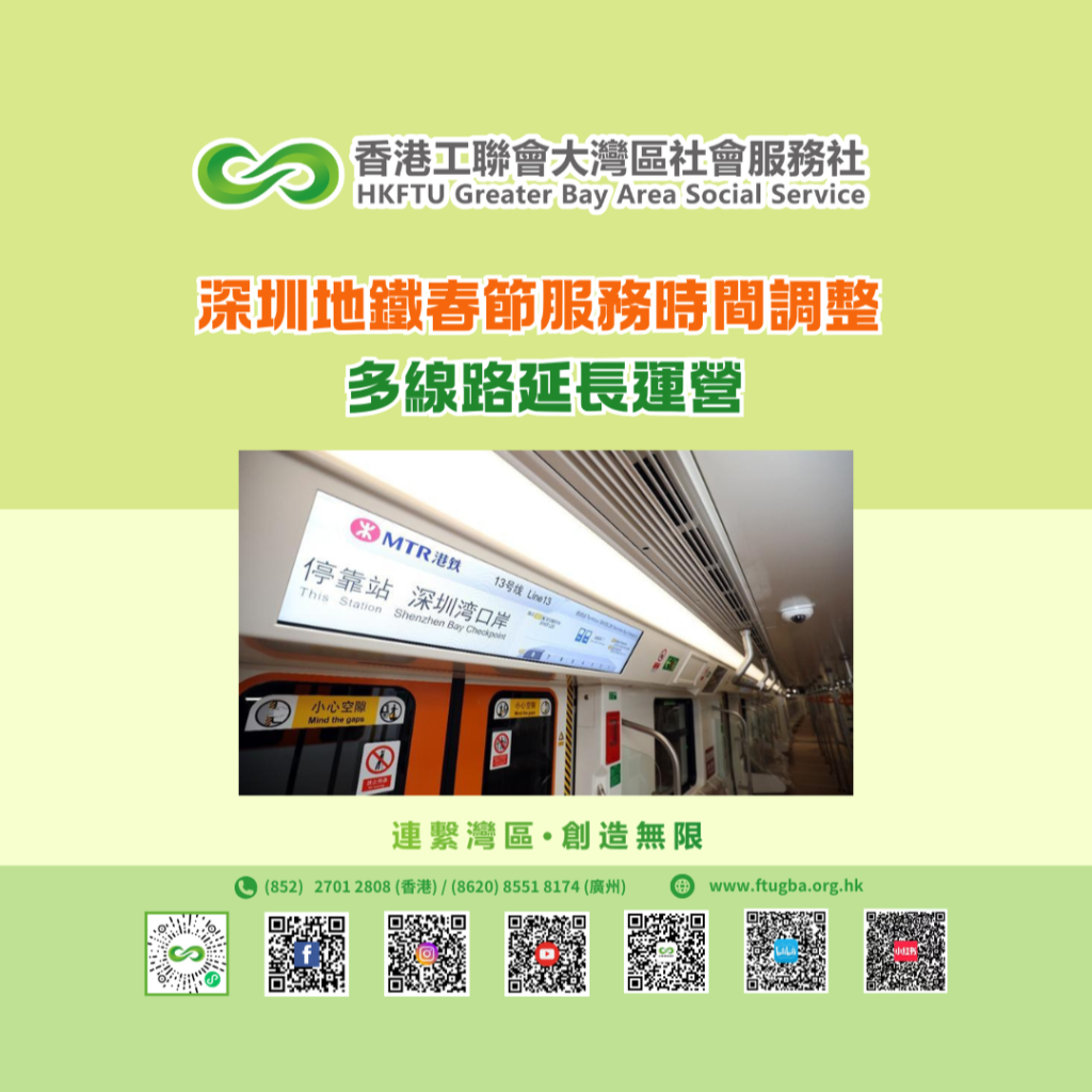 一年一度的「春運」已開始。為滿足農曆新年期間市民的出行需求,深圳地鐵及港鐵深圳全線網絡,將於春節期間按「11+8+7」的模式,延長列車服務時間。即:11天全網延長,8天部分線路延長,7天單一路線延長。