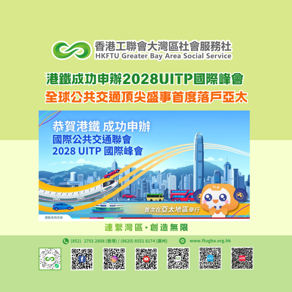 運輸及物流局2月26日在社交平台專頁表示,港鐵公司代表香港獲國際公共交通聯會(International Association of Public Transport,UITP)選定為2028年UITP國際峰會的主辦單位,這項有過百年歷史、全球公共交通業界頂尖的盛事將首次在亞太地區舉行。