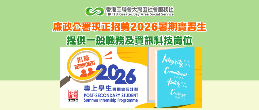 廉政公署現正招募2026暑期實習生 提供一般職務及資訊科技崗位