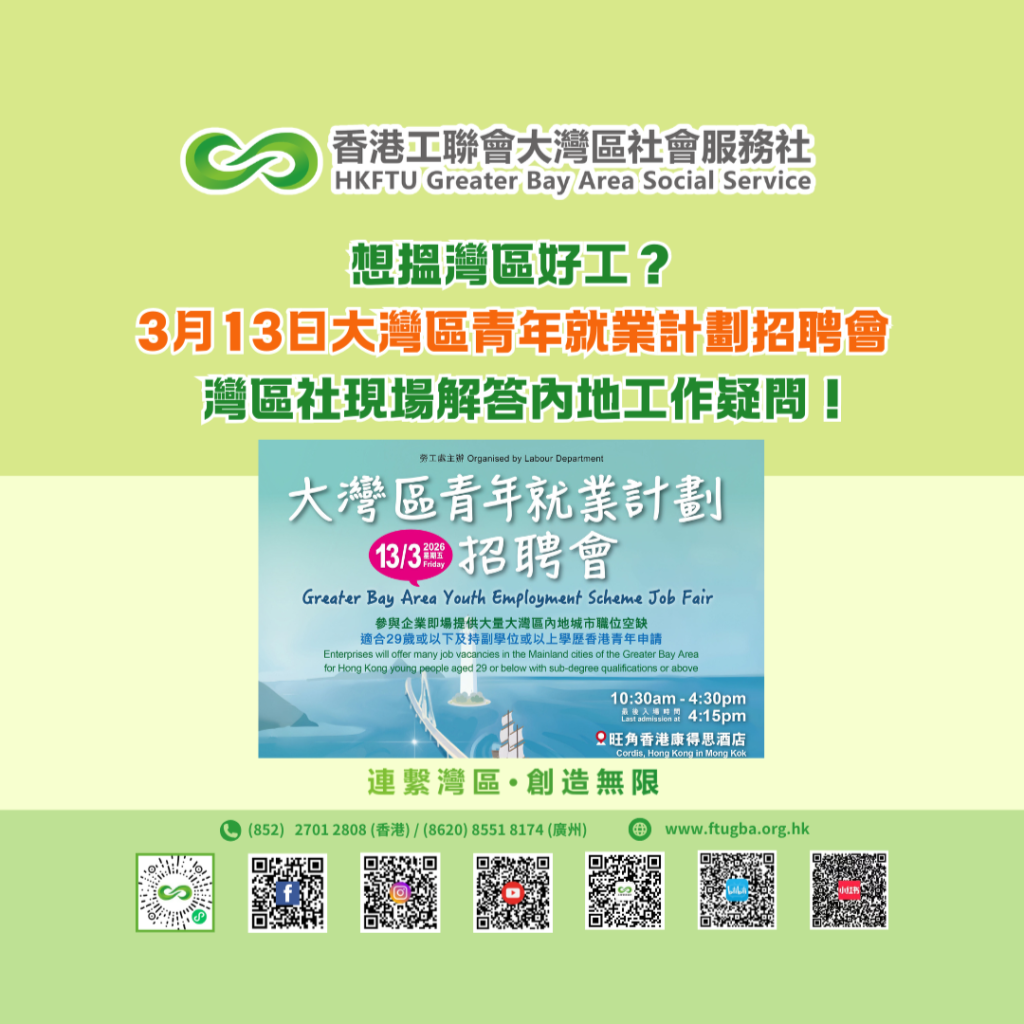 想搵灣區好工?3月13日大灣區青年就業計劃招聘會 灣區社現場解答內地工作疑問!