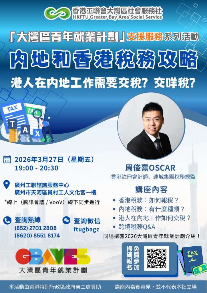 準備又到香港打工仔一年一度的報稅時間,對於一班剛踏入職場的新鮮人來講,可能對於如何報稅和交稅比較陌生,而且有好多疑問——在內地工作的港人要交內地稅嗎?參加了「大灣區青年就業計劃」被派駐到內地工作的青年,又需要交哪些稅?