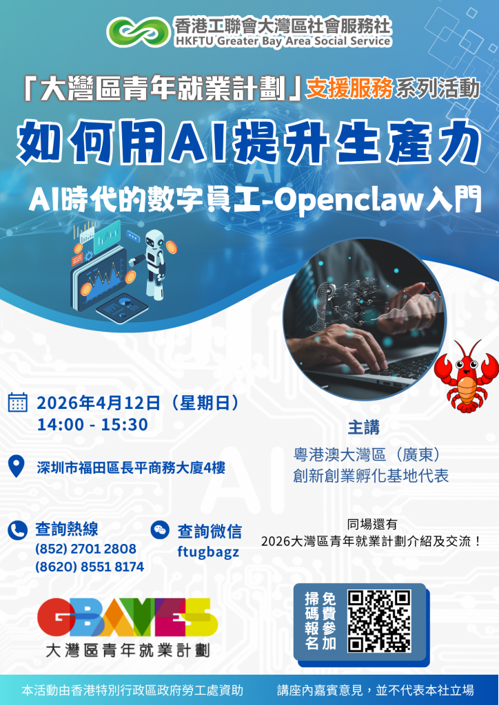 香港工聯會大灣區社會服務社又有超實用免費講座啦~