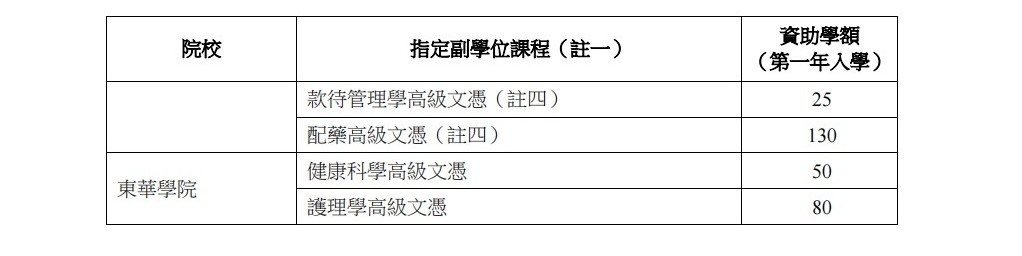 參與院校及指定課程:該32個指定副學位課程屬於7個對人才需求殷切的範疇,分別為建築及工程、電腦科學、創意工業、護理、運動及康樂、檢測及認證和旅遊及款待。