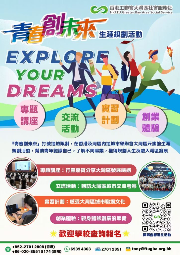 「青春創未來」是一系列充滿大灣區元素的生涯規劃活動,讓中學生及大學生更認識自己、了解不同職業,從而懂得規劃人生及融入灣區發展。