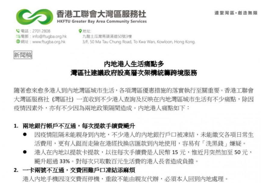 新聞稿 | 活動 「灣區同行 社區躍動」灣區資訊全接觸啟動禮——深入社區宣講 促進灣區融合 By香港工聯會大灣區社會服務社 22 4 月, 202511 8 月, 2025 由香港工聯會大灣區社會服務社(灣區社)主辦的「灣區同行 社區躍動」灣區資訊全接觸啟動禮,於今日(4月22日)在…