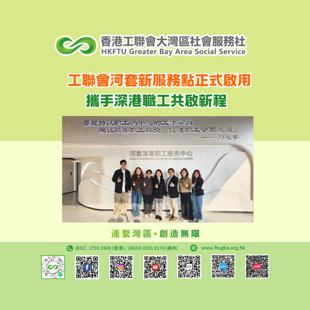 隨着河套新服務點的正式運作,深圳中心已形成「羅湖+河套」雙點聯動的服務網絡,空間布局更完整,服務範圍更廣泛。深圳中心將繼續秉持服務初心,聆聽內地港人心聲,拓展服務內容,為內地港人安居樂業、融入發展提供有力支撐。如有興趣加入我們,或是想了解更多資訊,歡迎撥打深圳中心熱線電話:86755-82220098。