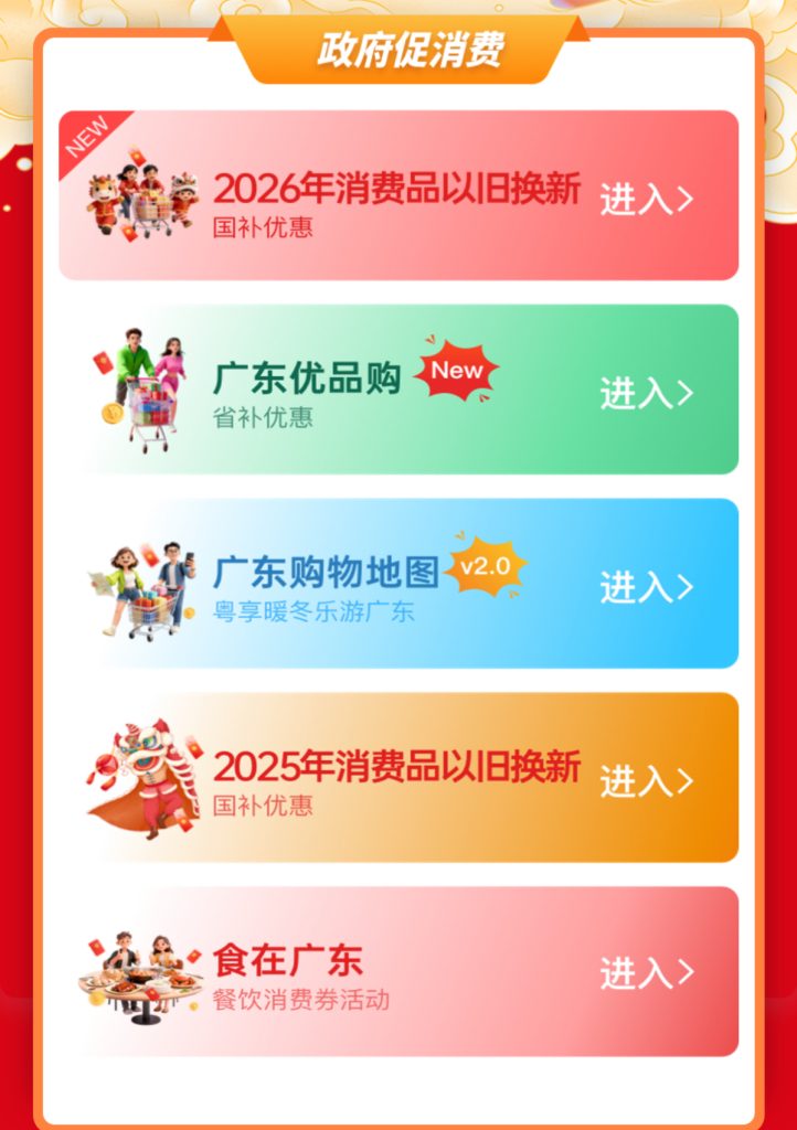 商務部與國家發改委於2026年1月1日正式啟動新一輪《購新補貼實施方案》(簡稱「國家補貼」),首批資金高達625億元人民幣。此計劃不僅惠及內地居民,更涵蓋港澳居民——港人憑有效回鄉證,即可享受購買數碼產品及家電的政府補貼。