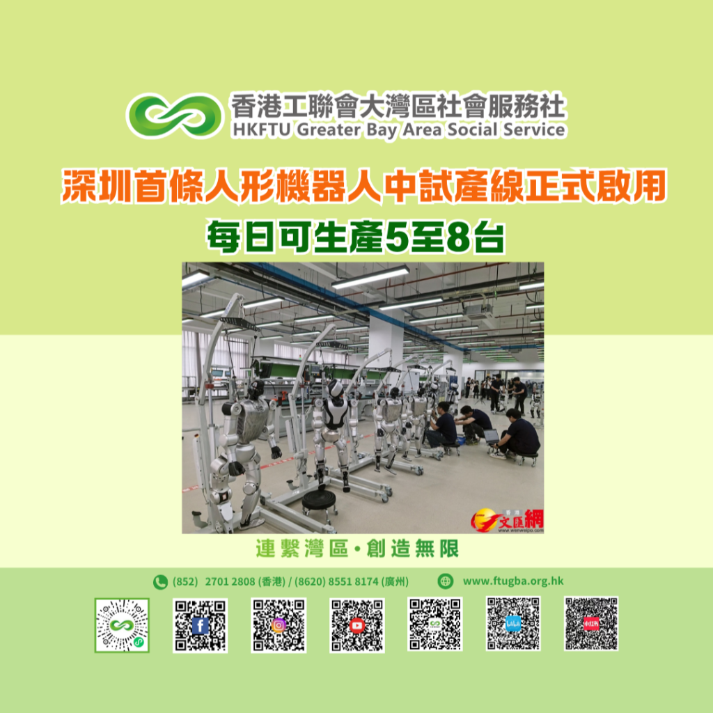 深圳首條人形機器人中試產線正式啟用 每日可生產5至8台