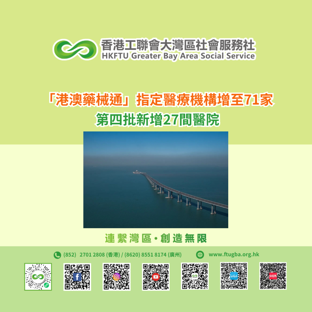 「港澳藥械通」指定醫療機構增至71家 第四批新增27間醫院