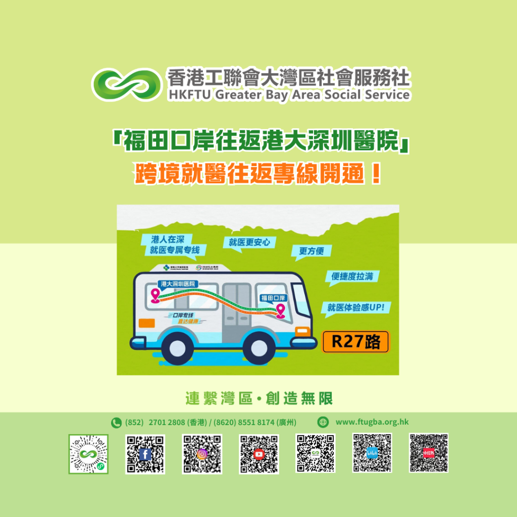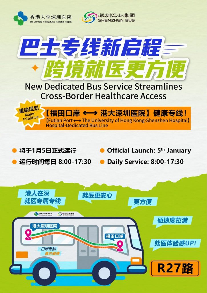 專線採用定製巴士6027號(R27)直達設計,全程約11公里,僅需30分鐘即可實現口岸與醫院「一站直達、中途不停」。票價實行普惠政策,每人每次僅需2元,試運行三個月期間,60歲及以上長者可免費乘坐。