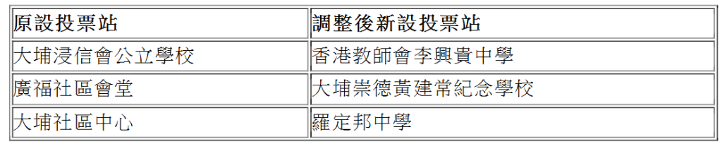因應大埔火災,選舉事務處將會重新安排區內的三個票站。受影響的主要包括宏福苑、廣福邨、大埔滘和大埔墟的選民。